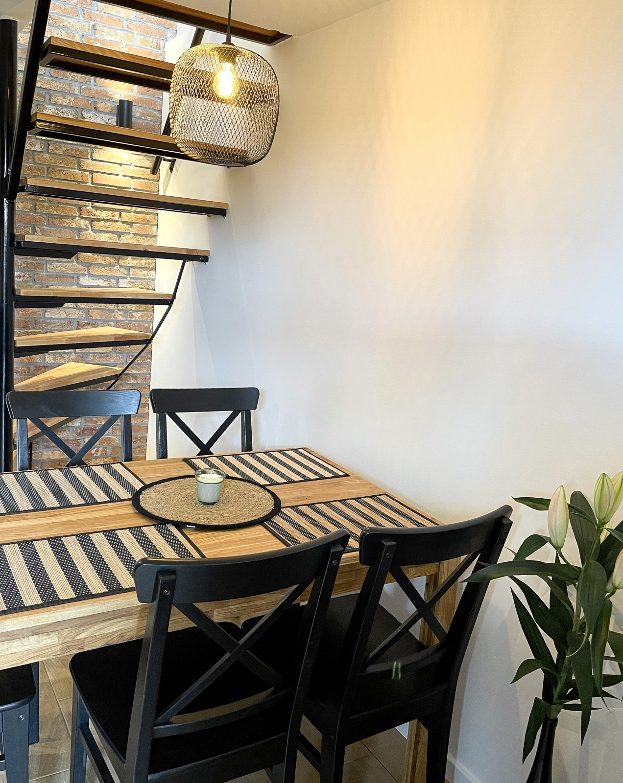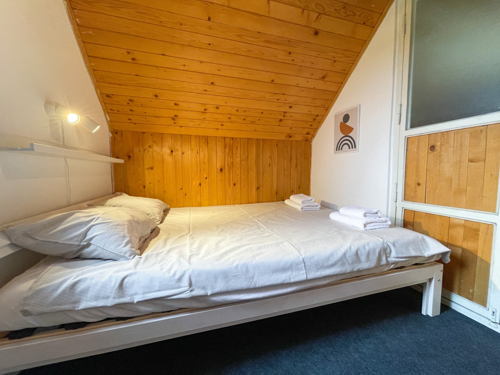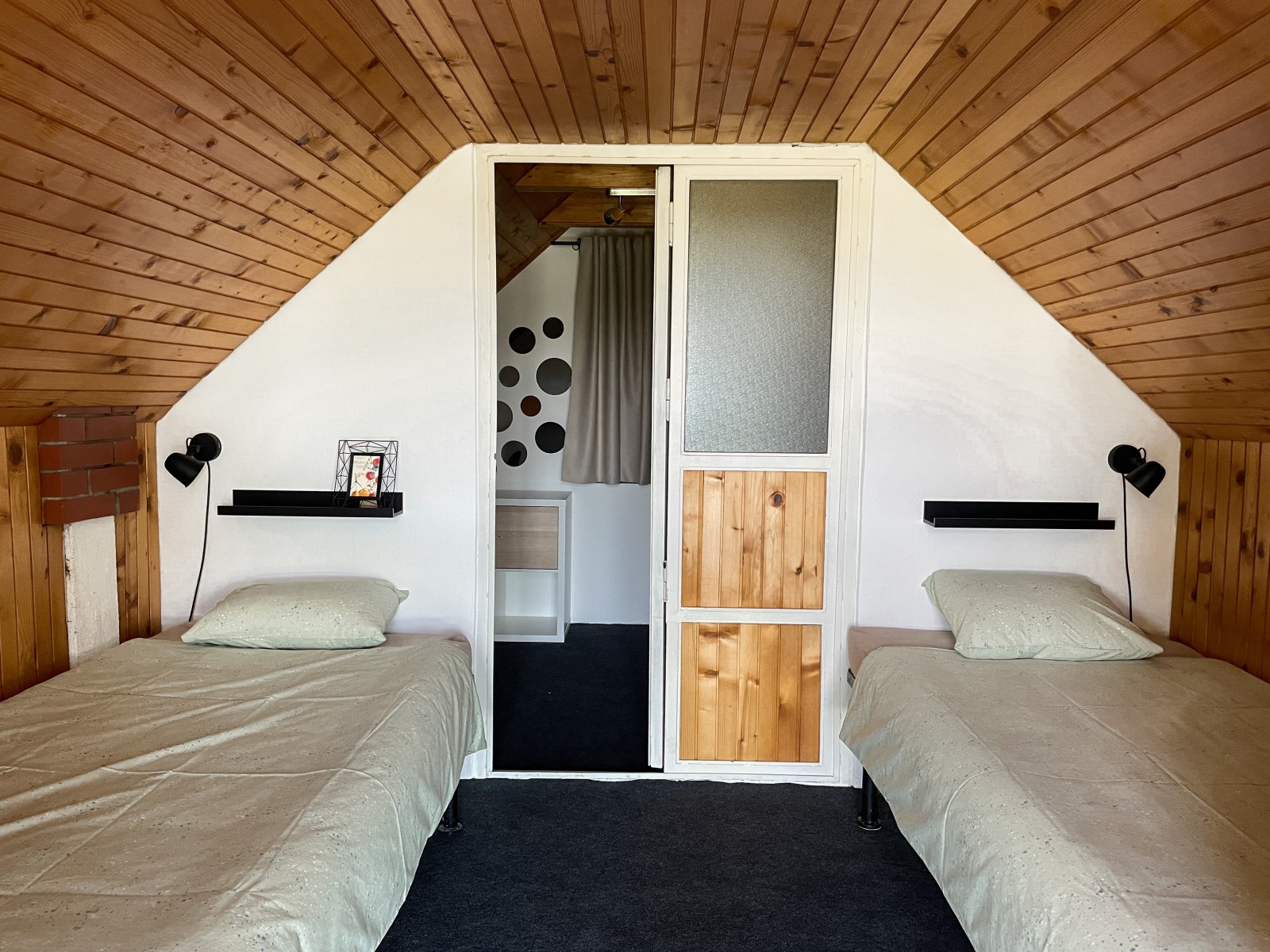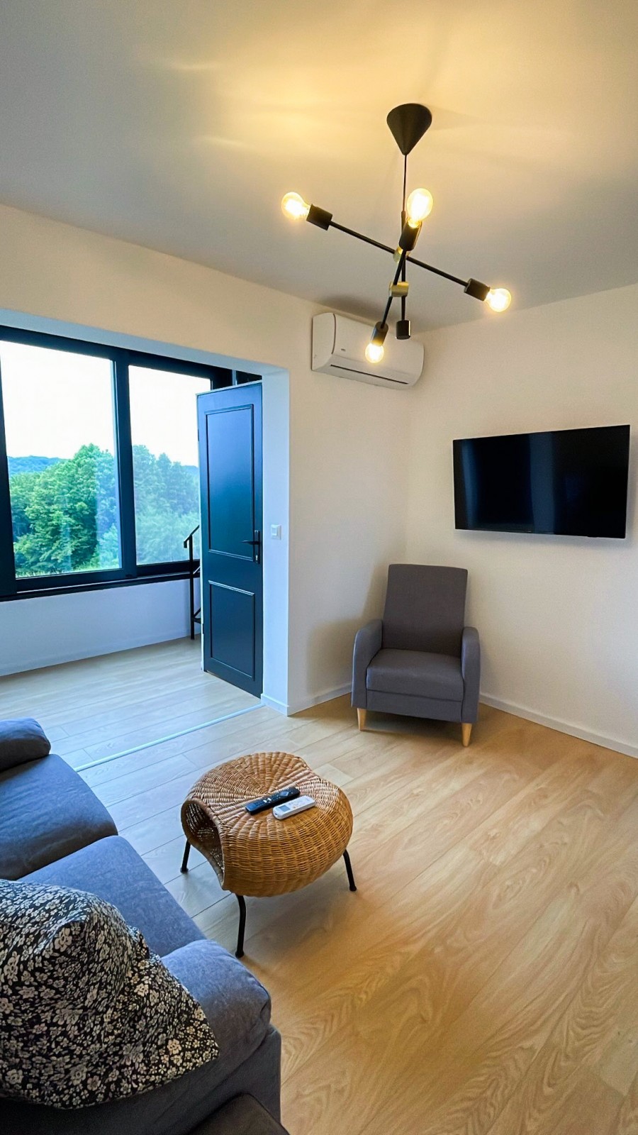 Na prvoj etaži se nalaze u potpunosti opremljena kuhinja, s kompletnim priborom za pripremu i konzumaciju jela i pića, frižider, perilica suđa, električna ploča za pripremu hrane, napa, pećnica, s blagovaonicom i kupaonica s walk in tušem 120x90cm. Na drugoj etaži se nalazi mali wc, dnevni boravak s ostakljenim kaminom na drva i staklenom stijenom s pogledom na prekrasnu prirodu koja okružuje ovu malu kućicu, TV 43’’, klima uređaj, te soba s krevetom 140x200 cm. Na zadnjoj etaži se nalazi predsoblje s pogledom na šumu i dvije spavaće sobe od kojih je jedna s dva odvojena ležaja 100x200 cm i jedna s ležajem 140x200 cm.
